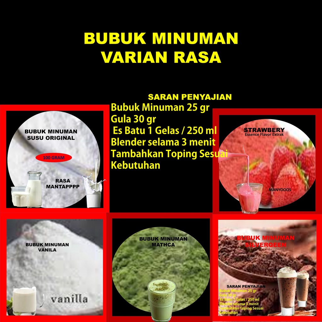 Saat ini produk minuman sedang digemari oleh banyak kalangan masyarakat, indo powder menyediakan minuman bubuk dengan berbagai varian rasa.
